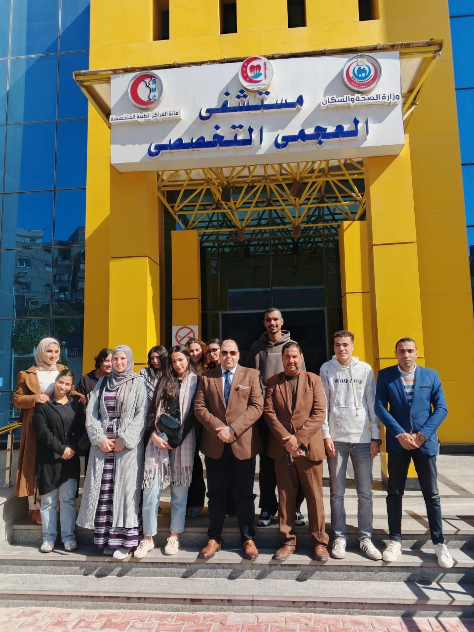كما تضمنت الزيارة جولة داخل مدرسة التمريض التابعة للمستشفى، والتعرف على نظام الدراسة والتدريب العملي للطالبات، وزيارة المطبخ المركزي والاطلاع على إجراءات السلامة وجودة الأغذية المقدمة للمرضى، وآليات الفحص والتخزين والتعقيم. وتعرف الطلاب كذلك على أقسام العناية المركزة والطوارئ واستمعوا إلى شرح تفصيلي حول الخدمات الطبية المقدمة، وأعداد الحالات التي تستقبلها المستشفى يوميًا والدور الذي تقوم به في خدمة عدد من محافظات الجمهورية. وأعرب الطلاب عن تقديرهم لحجم الجهد المبذول داخل المستشفى مؤكدين أن الزيارة منحتهم رؤية أعمق لطبيعة العمل داخل القطاع الطبي وأهمية التكامل بين الإعلام والمؤسسات الصحية في نقل الحقائق للمجتمع. واختُتمت الزيارة بالتقاط صورة تذكارية جماعية مع الدكتور صلاح الحصاوي، مدير مستشفى العجمي العام، وسط أجواء من الترحيب والتقدير المتبادل حيث عبر الطلاب عن سعادتهم بالتجربة مؤكدين أن الزيارة كانت فرصة حقيقية للتعرف علي المستشفى.
