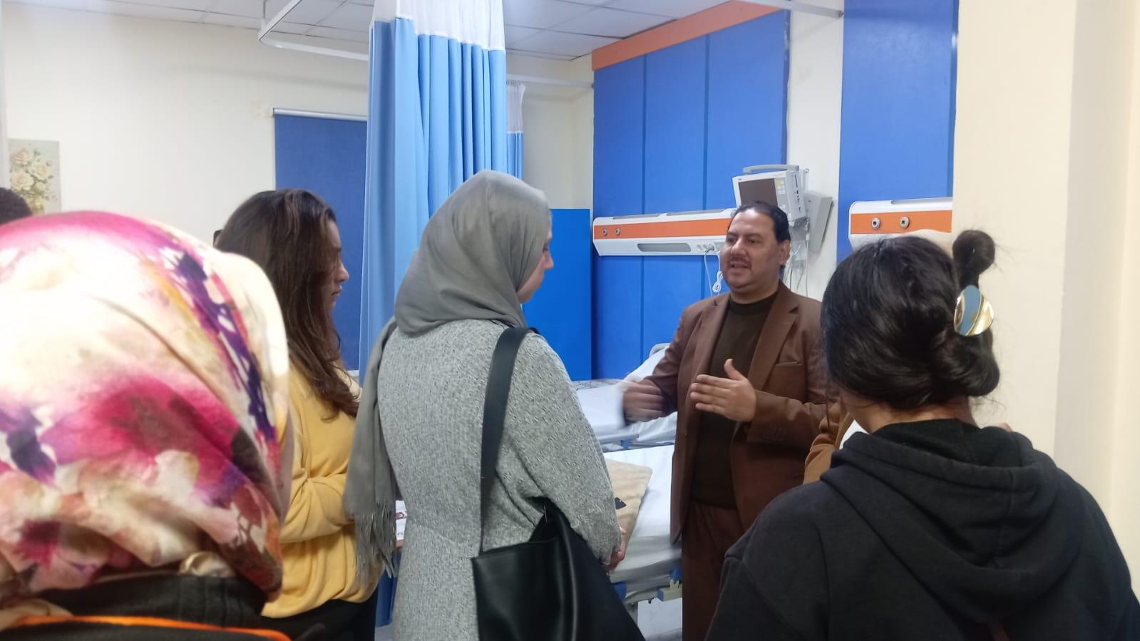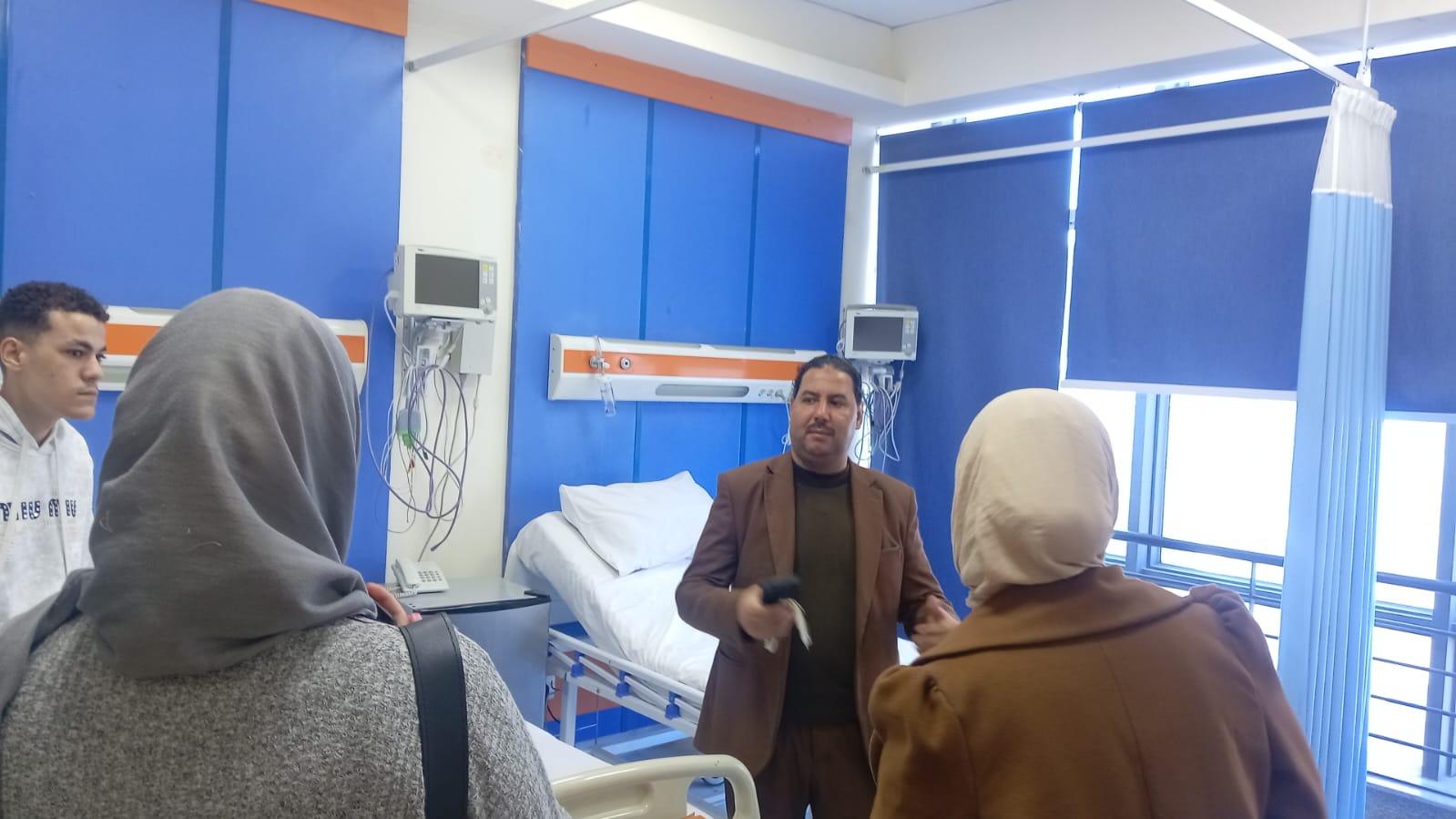حيث كان في استقبال الوفد الدكتور صلاح الحصاوي، مدير المستشفى، الذي رحب بالطلاب وأكد أهمية دور الإعلام في نقل الصورة الحقيقية لما تقدمه المستشفيات الحكومية من خدمات طبية متطورة. وشملت الجولة تفقد عدد من أقسام المستشفى، من بينها قسم التحاليل الطبية، ومعامل الميكروبيولوجي والكيمياء الإكلينيكية، إلى جانب بنك الدم، حيث تعرف الطلاب على آلية العمل والأجهزة الحديثة المستخدمة في إجراء التحاليل المختلفة.